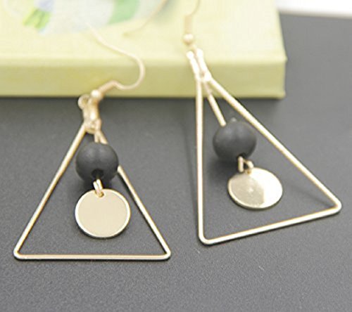 Leiothrix Vintage Triangle Black Wooden Bead Paillette Earrings for Women and Girls Apply to Party and Casual
