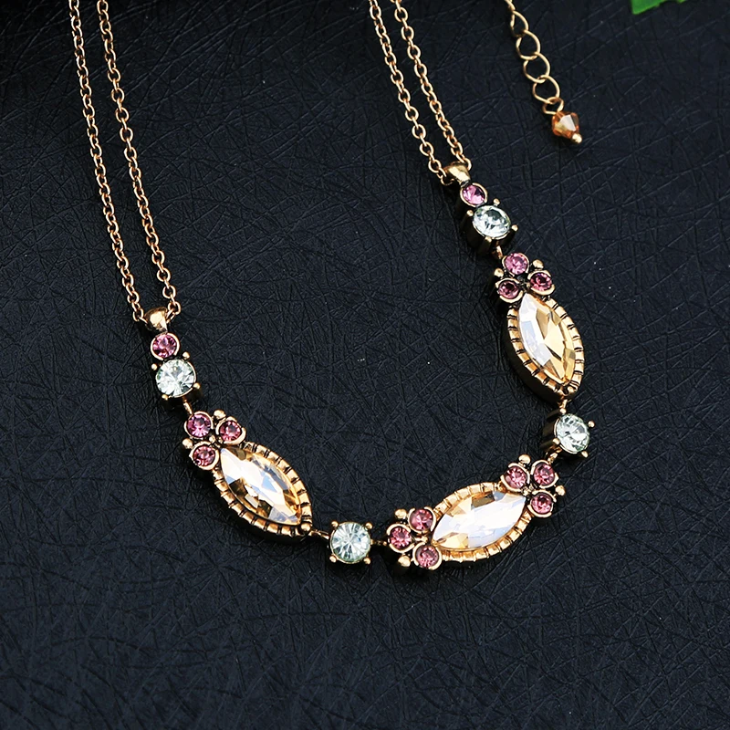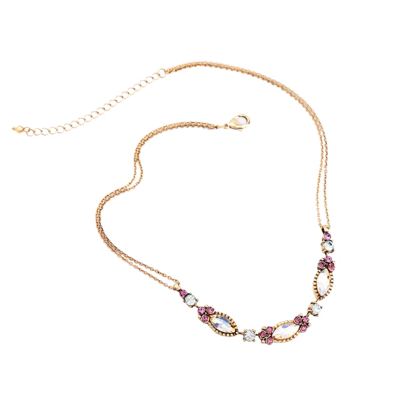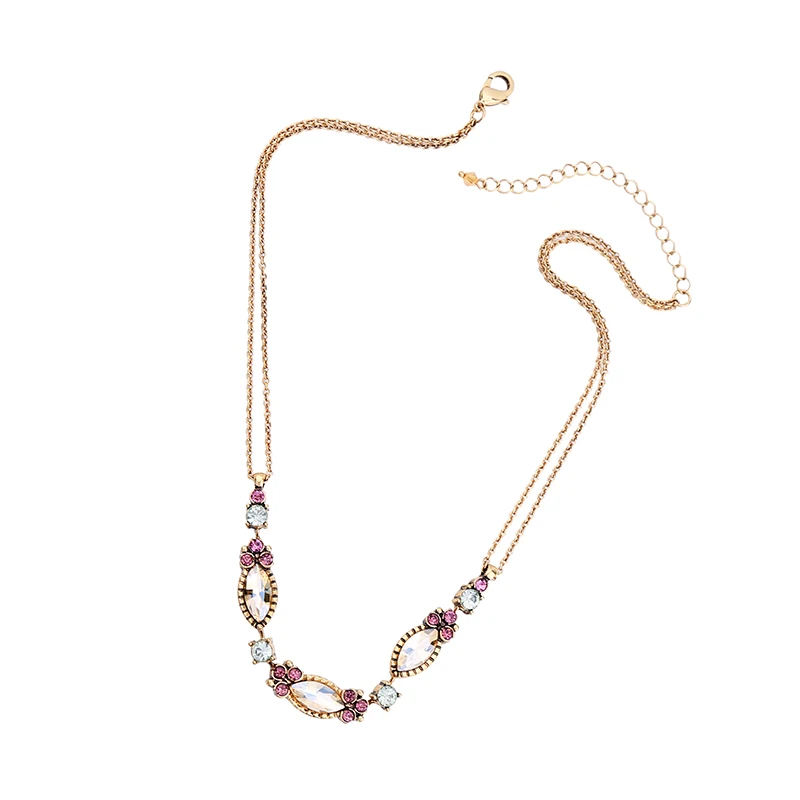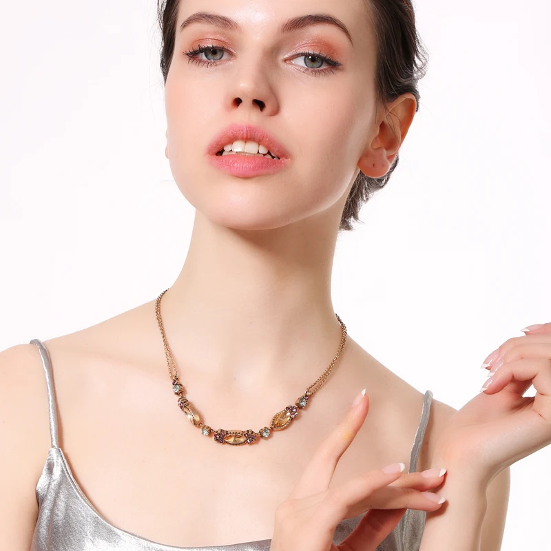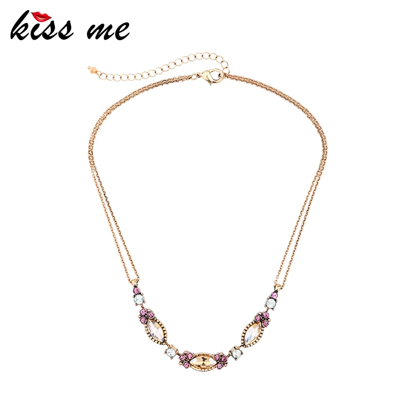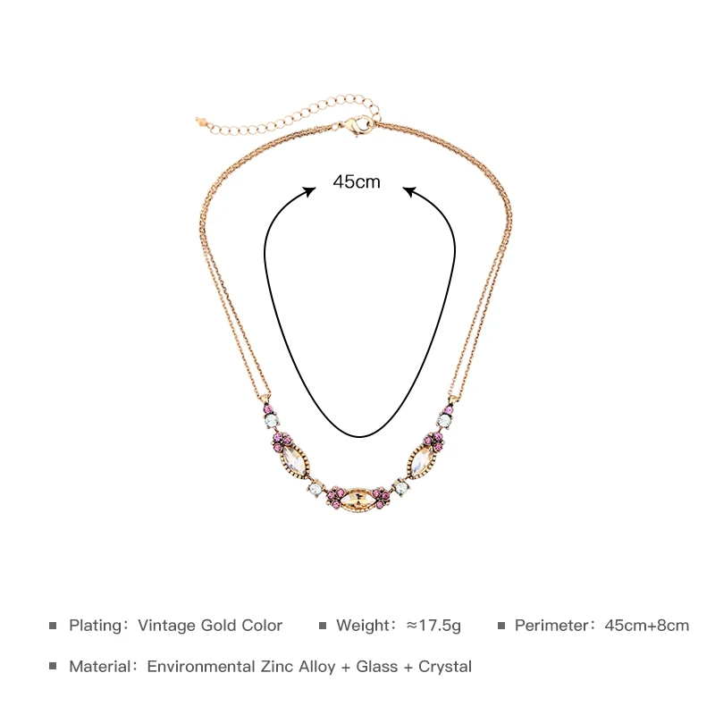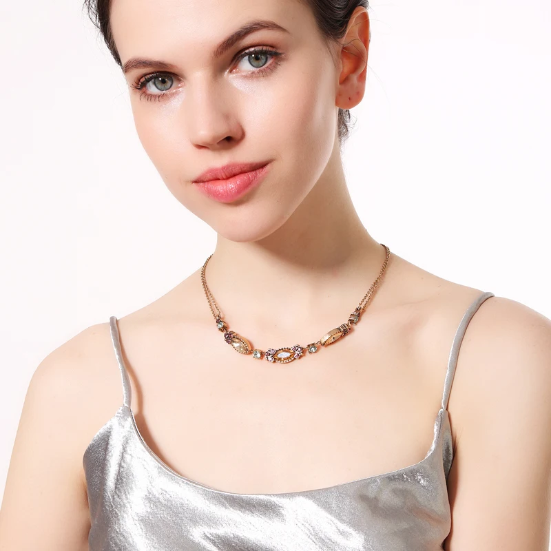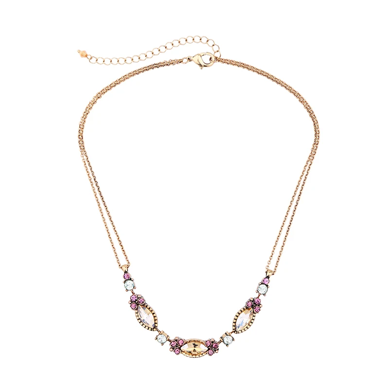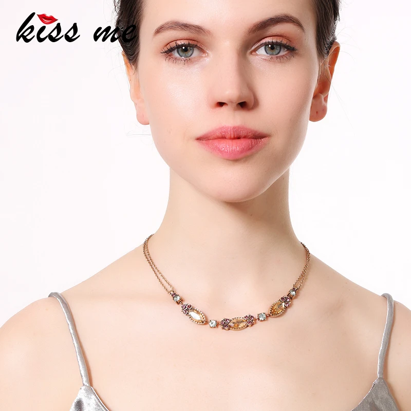 Production name ::KISS ME Double Layers Chain Champagne Crystal Short Necklace