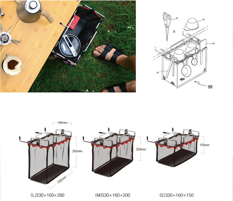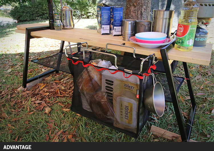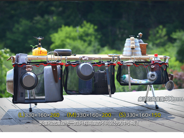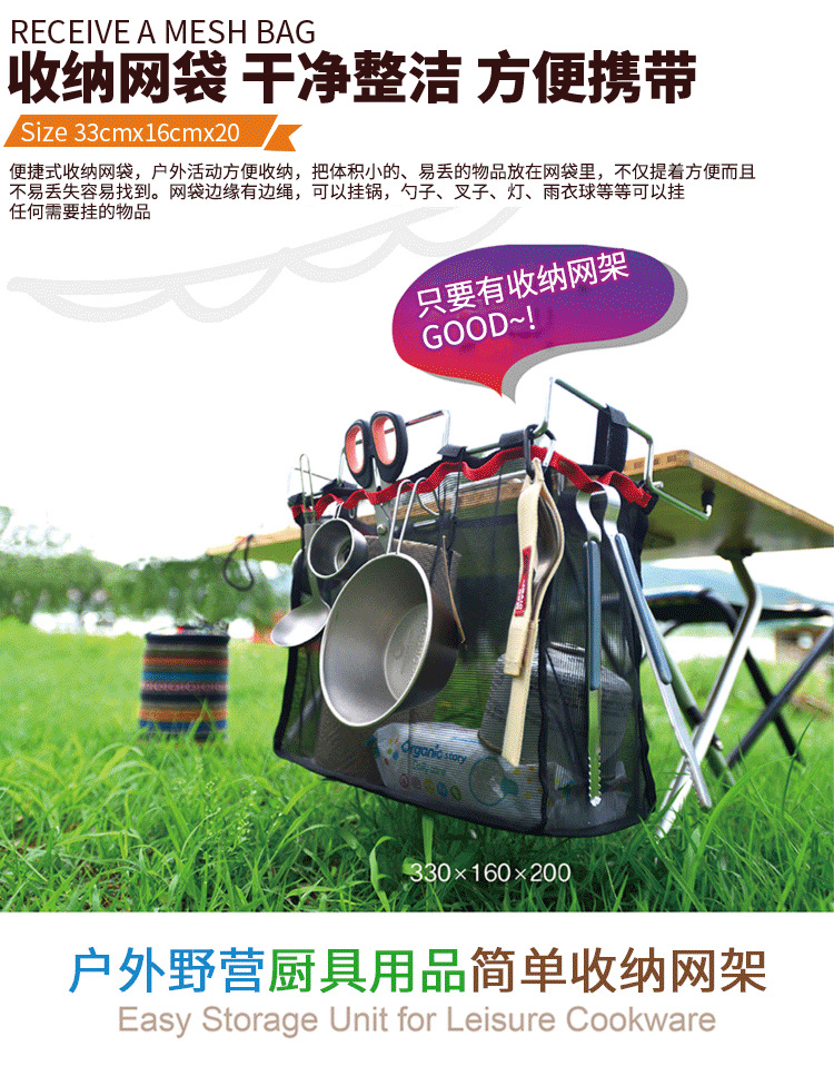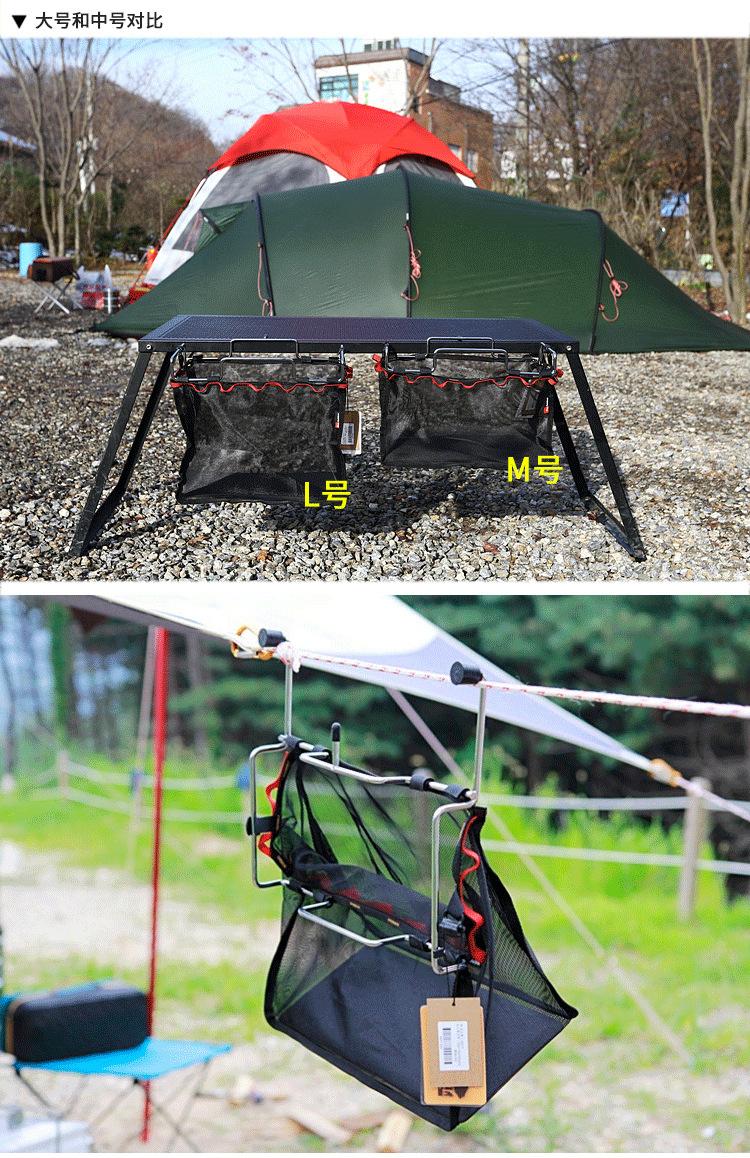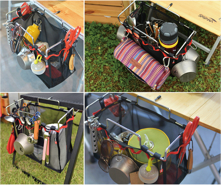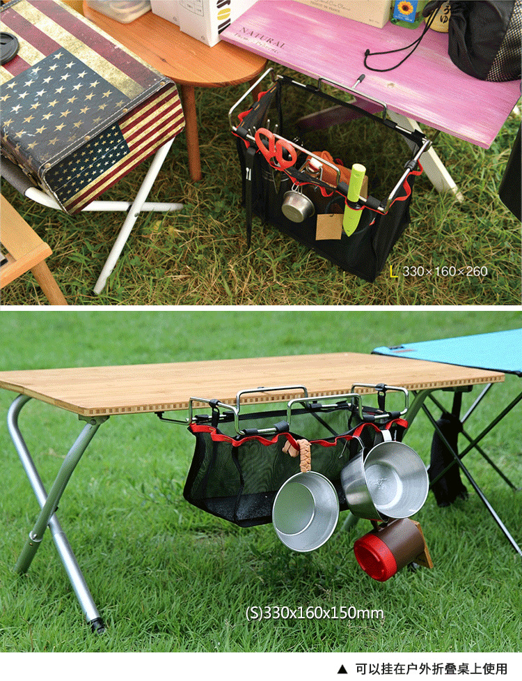 户外活动、野营时,多种多样的物品可以收纳保管,不易丢失