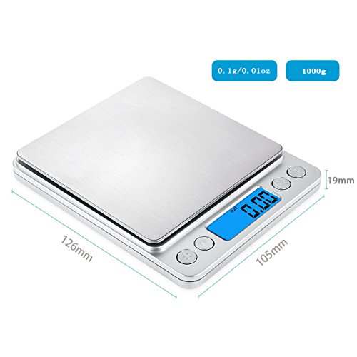 - 【High-Precision】 1000g capacity with 0.01 gram readability,make it an ideal to measure jewelry, medicine, and cooking ingredients with refined accuracy.