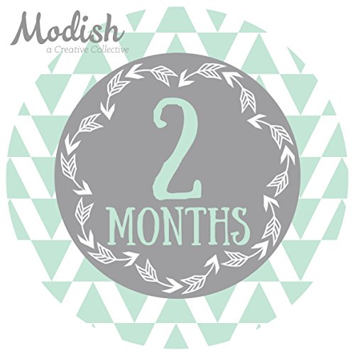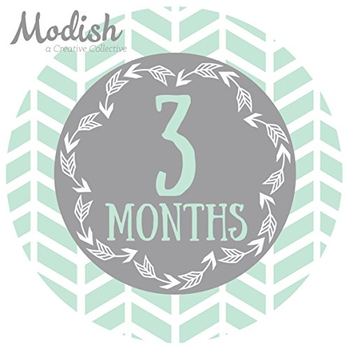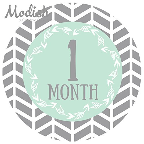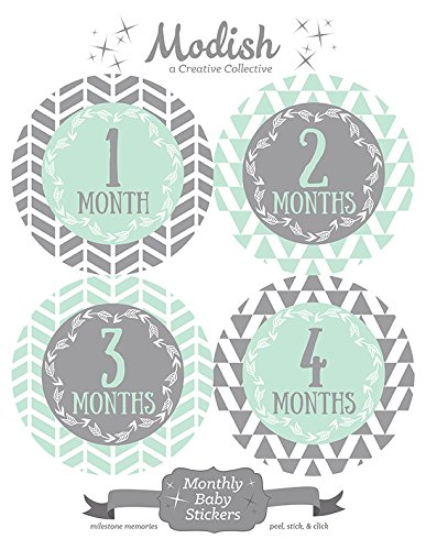 12 Monthly Baby Stickers, Gray, Mint, Boy, Baby Belly Stickers, Monthly Onesie Stickers, First Year Stickers Months 1-12, Gray, Mint, Arrows,...