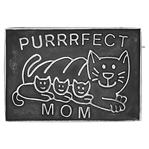-. Title : Sterling Silver Oxidized PURRRFECT MOM Brooch Pin, 1 1/2 wide
