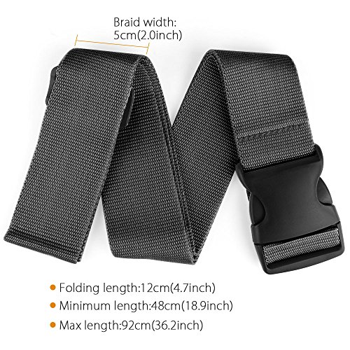 Studio : AOFU Publisher : AOFU Product Description SPECIFICATIONS : Color : Black Product Weight : 75g Length : About 55cm / 21.64in Scope : Suitcase, Handbags, Laptops Rated Loading Weight : About 77lb / 35kg Material : Crafted with high quality Nylon microfiber, not easy to deformation, insulation, crisp, corrosion resistance. ADVANTAGE : Easy to wash , convenient storage, easy to use.Strong and durable. The bag bungee has a good elasticity and can bind more items. EASY TO USE : Traveling straps bring more convenience for your travel,with your luggage is better tied together to reduce your burden and make you more relaxed. 0