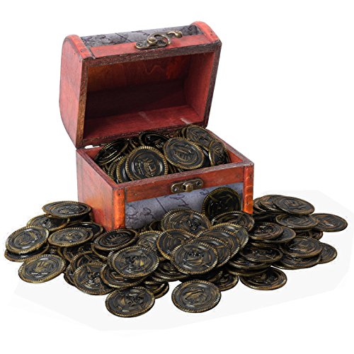 - GREAT ACCESSORIES FOR YOUR PIRATE PARTY: Treasure coins and an exquisite pirate box, especially suitable for your vintage pirate themed party or Ludo game, the nominal value of each coin is 100, got them and start your game with your friend right now, go for next Pirate King!