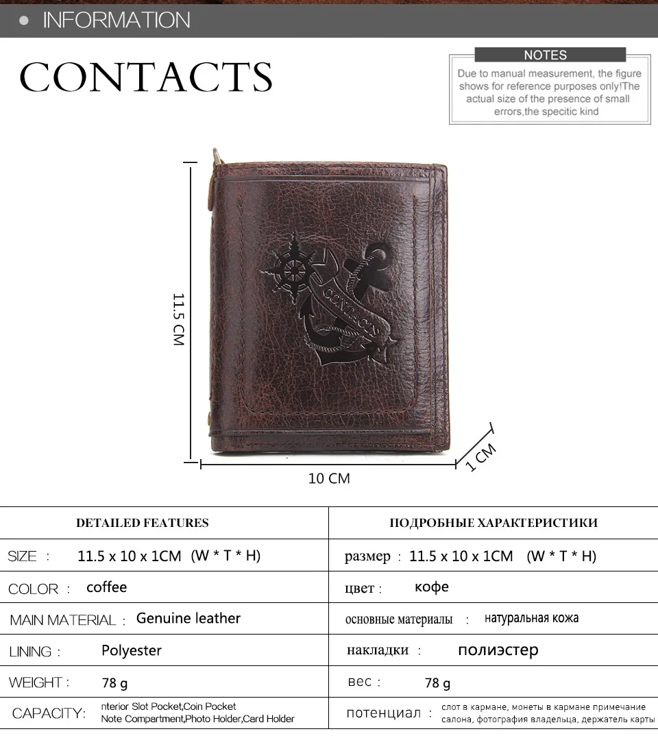 Interior:Coin Pocket,Card Holder,Note Compartment