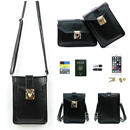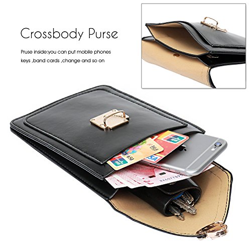 POCKETS: 2 main pocket wallet or cell phone , 1 small front pockets for keys/card. Spacious room with snap on closure can hold iPhone, keys, money, cards, wallet, headphones,passport, tickets, cash, credit cards and classify your personal stuff personal small items;