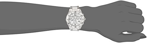 -. Feature : Stainless steel watch with diamonds on dial and bezel and three-link bracelet with white center ceramic link / Japanese quartz movement with analog dispaly / Eco-drive is powered by light and does not need a battery / Features protective mineral crystal dial window, date window, chronograph subdials, and fold-over push-button clasp with safety / Water resistant to 330 feet (100 M): suitable for snorkeling, as well as swimming, but not diving
