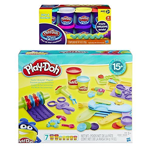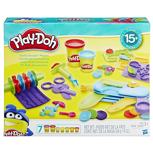 Get busy with all the right tools for any Play-Doh job! The Toolin' Around set features lots of options for open-ended creative fun. The handy multi-tool cuts, slices, and shapes all kinds of Play-Doh creations, and also features a clip for easy carrying! The roller features 6 attachments that slice different fun designs into Play-Doh compound. Use the 3 double-sided mold plates to create more tools, silly animals, and other colorful shapes. The 2 pressing tools, scissors, and trimmer knife help customize the creations even more. With so many tools for the job, the Toolin' Around set is like a mini Play-Doh hardware store for creators and builders alike! Hasbro, Play-Doh and all related properties are trademarks of Hasbro.Feature