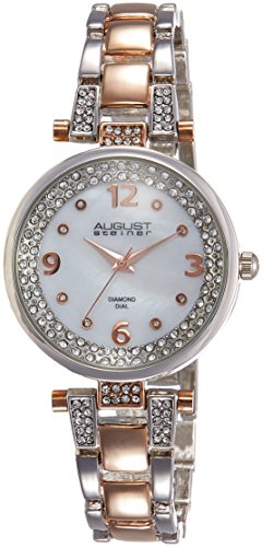 August Steiner Women's AS8137TTR Rose Gold And Silver Swiss Quartz Watch with Silver Mother of Pearl Dial and Crystal Accented Rose Gold & Silver Bracelet