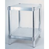 PVIFS aluminum equipment stand with heavy-duty solid adjustable aluminum shelves, 400 pounds capacity per shelf. Smooth, flat solid surface, 1/8-inches marine edge contains spills. Easy ''lock bushing'' assembly. 1-1/2-inches diameter heavy-duty round posts.