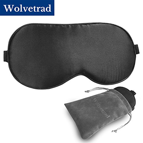 Sleep Mask, WOLVETRAD Blindfold, Gift Carry Pouch Included Natural Silk Super Smooth Eye Mask for sleep with Adjustable Strap (Large, Black)