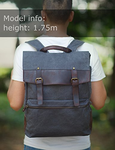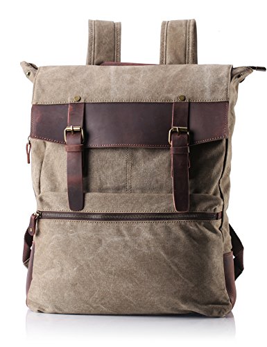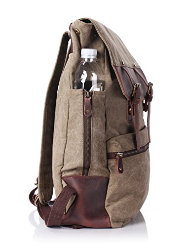 -. Brand : ZEKAR -. Department : mens -. Feature : High density Waxed Canvas and genuine leather trim, Zipper closure / Waterproof, fashion slim design, unisex, for men or women / Not too big or too small. Dimension: 19"x14.5"x5.5", fit up to14.3" laptop. ATTENTION: If you are petite, maybe this one is not fit for you, better for more than 1.65 metres tall / Side pocket for umbrella or water bottle / Multi pocket, practical, used in the daily pack, laptop backpack, daypack, school bag, bookbags, college backpack, hiking backpack, travel bag, fit for men and women -. ProductGroup : Apparel -. ProductTypeName : LAGE -. Size : M -. Title : ZEKAR Vintage Waxed Canvas Leather Backpack, Multipurpose Daypacks