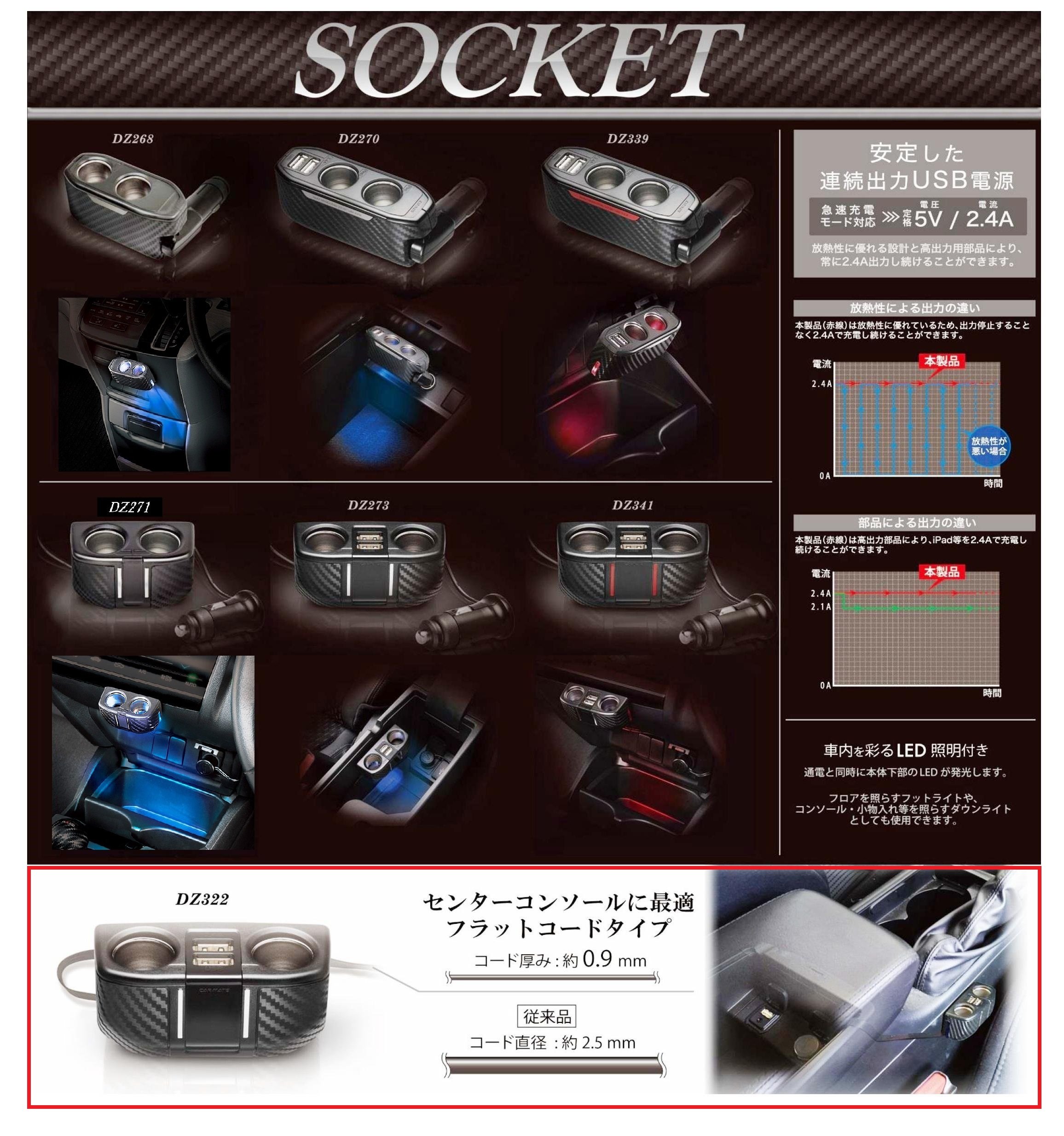 Carmate (CARMATE) 2-neck with socket two consecutive flat code USB 2.4A carbon style DZ322