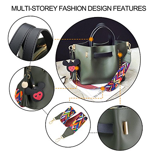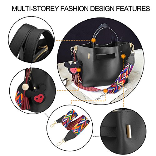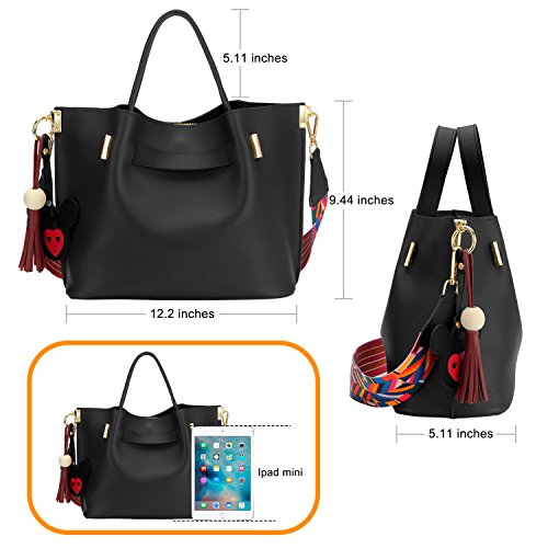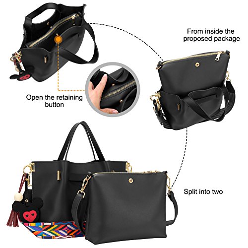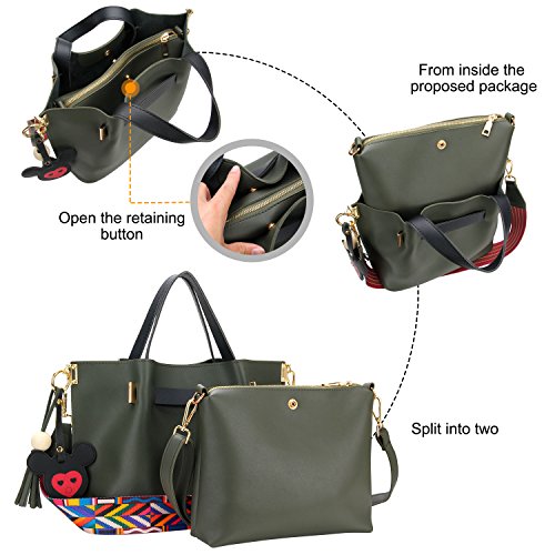-. Feature : 2017 New Arrival elegant women's handbag which made of high quality premium PU leather with wearproof metal accessories. / Satisfying dimension: 12.2"(L)*5.11"(W)*9.44"(H), provides large capacity for accommodating mobiles phones, wallet, credit card and other daily essentials. / 2 straps available in the package: one is in same color and material, one is a wide and colorful knitting style strap, makes you look different. 2 cute drops are attached freely. / The inner purse is combined to the handbag with metal buttons, one bag with 2 parts. Use it as a Cross body bag, Handbag, a Tote Bag, or a Shoulder Bag. Perfect for using in office, school, travel or any other daily occasions. / All bags purchased from Bagerly are covered with LIFETIME WARRANTY.