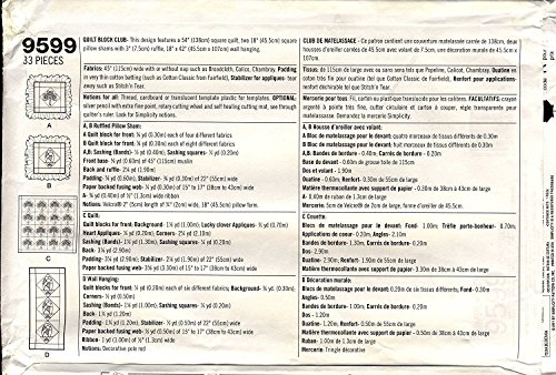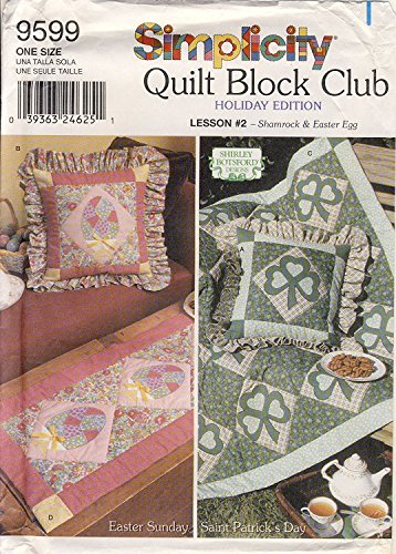 Simplicity Sewing Pattern 9599 - Quilt Block Club - Holiday Edition - Use to Make - Quilt, Pillow Sham, Wall Hanging In Shamrock and Easter Egg Design