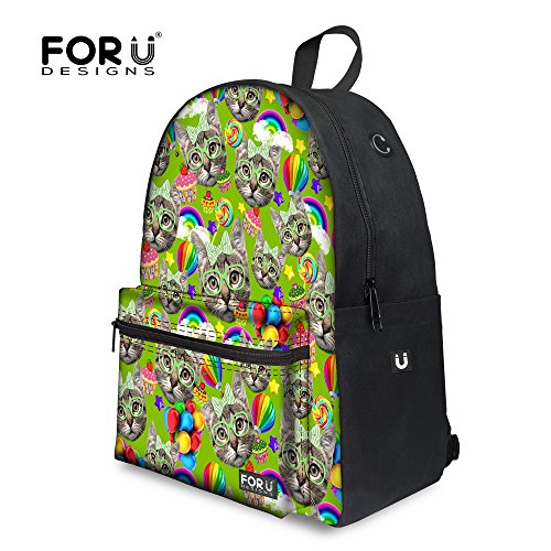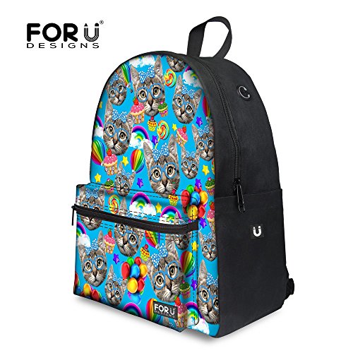 -. Brand : FOR U DESIGNS -. ClothingSize : Medium -. Department : girls -. Feature : Approx Dimensions:11.4" L x 15.35" H x 6.8" W / Compartments: 2*side pouch, 1* zipper pocket on the front , 1*laptop/tablet compartment (11") / Simple design, fashionable and suitable for travel,school and sports.Eco-friendly casual life style,mesh back and adjustable strap for Kids,students and leisure people. / Durable lightweight backpack: high quality soft material (canvas); smooth zippers; stain resistant; perfect size for college; not smell weird / Please allow little color difference due to different camera or light environment -. Model : C0361J6 -. PackageQuantity : 1 -. ProductGroup : Apparel -. ProductTypeName : LAGE -. Size : Medium -. Title : FOR U DESIGNS Casual Cute Cat Animal Backpack Lightweight Canvas School Backpack