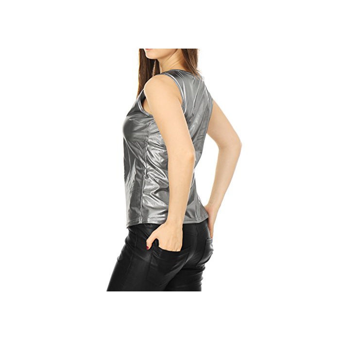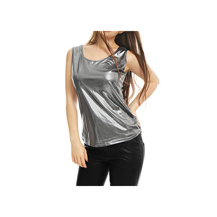 Allegra K (JP) 레이디스 탱크 탑 수없음 노슬리브 U넥 슬림 피트 캐주얼 그레이 L