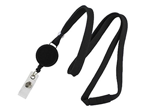 Brady People ID BL-545-BLK Polyester Flat Braid Breakaway Lanyard with Badge Reel, 3/8" Width, Black
