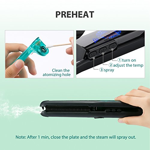 【NEW GENERATION STEAM TECHNOLOGY】: The steam straightener is designed with the newest and advanced steam function. The steam flat iron will release steam when you style your hair. It moistens hair and reduces the dry and damage caused by high temperatures, which help care for your hair and makes it much healthier.