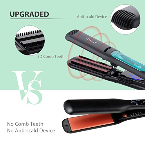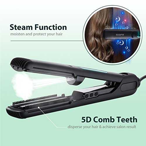 ElleSye Steam Straightener, Ceramic Flat Iron Negative Ionic Salon Hair Straightener Brush with Steam Function, 5D Comb Teeth, 3D Floating Ceramic Coated...