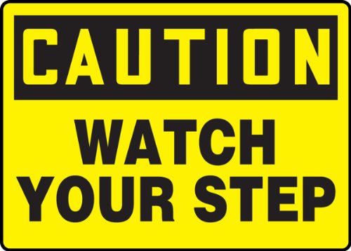 Accuform Signs MSTF645VP Plastic Safety Sign, Legend "CAUTION WATCH YOUR STEP", 7" Length x 10" Width x 0.055" Thickness, Black on Yellow