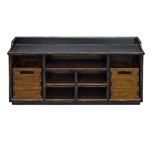-. Feature : Color/Finish: Craftsman Built Of Select Hardwoods Hand Finished In Worn Black, With Storage Shelves, And Two Solid Mahogany Dovetail Bins In A Warm Honey Finish. Keep Handle Openings Facing Out For Ease Of Use, Or Turn To Show Solid Sides For More Concealed Storage. / Size: 19'' L X 40.5'' W X 16.25'' Deep • Weight: 68.2 lbs. / Material: Premium Hardwood Composite With Mahogany & Albazia Wood / Heirloom Quality - Expertly Handcrafted and Hand Finished • Each piece may have subtle differences / Craftsman Built Of Select Hardwoods Hand Finished In Worn Black, With Storage Shelves, And Two Solid Mahogany Dovetail Bins In A Warm Honey Finish. Keep Handle Openings Facing Out For Ease Of Use, Or Turn To Show Solid Sides For More Concealed Storage. Bins Are 14.5 X 7.5 X 8.7 In Size.