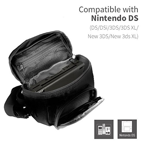 -. Feature : Lightweight and Compact Design - Enures that your entire DS equipment can be brought with you conveniemntly and hassle free! / Houses one Console with Specially Designed Compartments for Games + Stylus Pens + Charging / Power / Data Cables and Other Accessories, with room for other items also like your Phone, Keys, and Wallet, etc. / Zippable compartments ensure that all games and accessories remain safe without falling out whilst travelling with you. / Bag also comes equipped with a Carry Handle, plus also a Belt Loop, and an optional Fully Adjustable Removable Shoulder Strap for Easy Hands Free Transportation of your DS. / Suitable for all Models of DS that have a foldable lid (eg: Original DS / DSi / DS Lite / 3DS / 3DS XL / New 3DS / New 3DS XL, etc, but not the 2DS model)