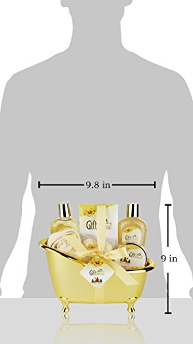 - ★ BEAUTIFUL PRESENTATION: You'll love the tiny vintage bathtub holder that contains this bath salts gift set, finished in a beautiful gold-colored tone. The bubble bath gift set is wrapped with a lovely golden yellow bow, saving you the need to gift wrap it, to crown one of the most eye-catching gift baskets for her you'll come across.