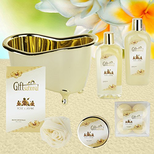 Here's why you'll love Rose & Jasmine bath gift set: - Contains everything you need to enjoy a relaxing bath.