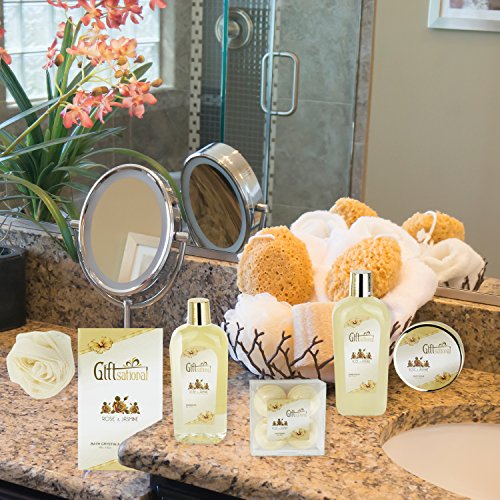 - ★ SENSUAL FLORAL SCENT: This bath gift set combines the timeless fragrance of rose and heavenly exotic jasmine to create a floral scent that will leave you feeling completely relaxed and sensually confident. The fruity undertones and warm feel make rose and jasmine one of the most romantic-smelling spa gift baskets in the entire collection.