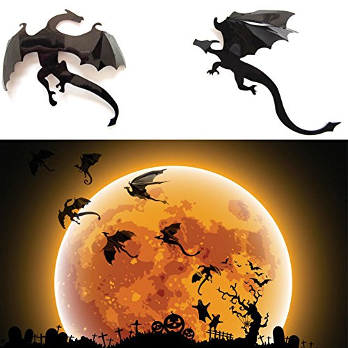 -. Feature : Decorate your: wall, car, window, living room, bedroom, just about any flat smooth clean surface! / Easy to apply to walls, doors, glass and other hard surfaces. For use on smooth walls -- can also go on glass (inside only, not outside) / Scary 3D dragons all over the wall / window. Arrange them as you wish. You definitely want them in your Halloween Party. Comes with easy to apply style. / Easy to stick. Fit any SMOOTH & DRY surface like painted wall\glass\tile (REMEMBER to CLEAN the dust before applying). / The background color will be the color of the surface you place the sticker on, or clear if you put it on a window.