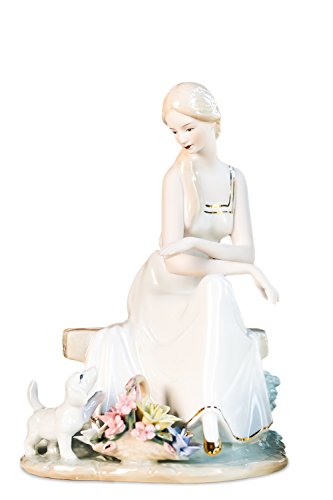 -. Feature : Ceramic antique small statue poses girl in white dress sitting on a bench and playing with puppy. / Female figurine follows classic European art traditions. It features exquisite details, flawless glazing, delicate colors. / Victorian porcelain lady will be a marvelous decoration for living room, mantelpiece, tabletop, shelves. / Vintage ceramic home decor is a great gift idea for birthday, Christmas, engagement, wedding, housewarming etc. / Porcelain collectible item measurements -10.6"*7.5"*5.5", weight - 2.4 lb.