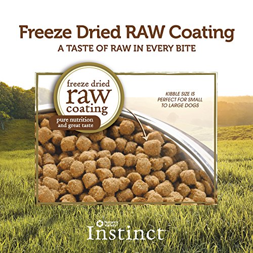 -. Feature : Natural ingredients with added vitamins and minerals. No artificial colors, flavors or preservatives / Grain-free and gluten-free nutrition. No corn, no wheat, no soy, no fillers / Protein-rich diets made P.R.Imarily from animal ingredients as your dog would eat in nature / Healthy Omega 3 and Omega 6 fatty acids for a soft and shiny coat. Probiotics to support healthy digestion. Antioxidants for immune system health / Freeze dried raw coating for pure nutrition and great taste / Instinct is the official pet food partner of Best Friends Animal Society and provides over 1 million meals of Instinct to their adoption centers / Grain-free kibble (no fillers or soy) - proven to provide great taste and nutrition;Helps your dog reach and maintain an ideal weight along with proper portions and exercise;May provide relief from most food allergy symp;Perfect for small to large dogs and complete and balanced for all life stages and all breeds;Made in the USA