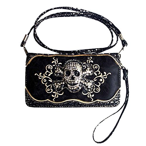 Rhinestone Skull Metal Color Leather Women's Handbag, Wallet with Texas West Coin Collection in 4 Colors