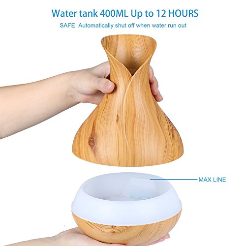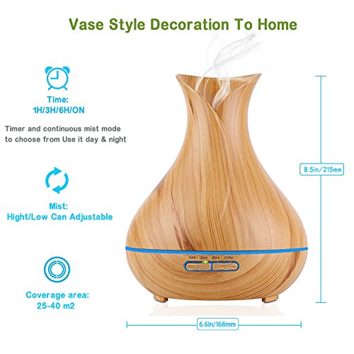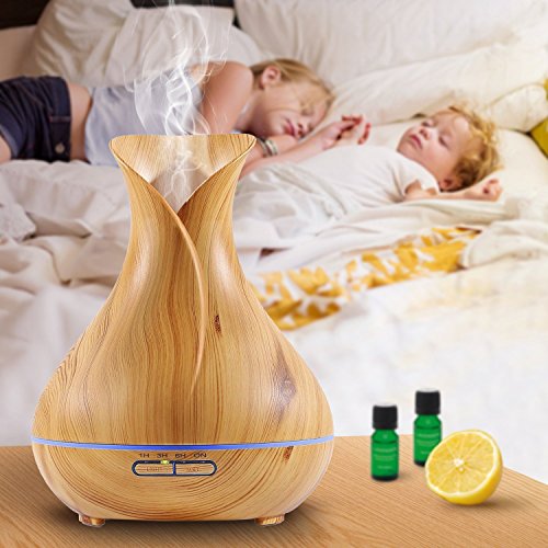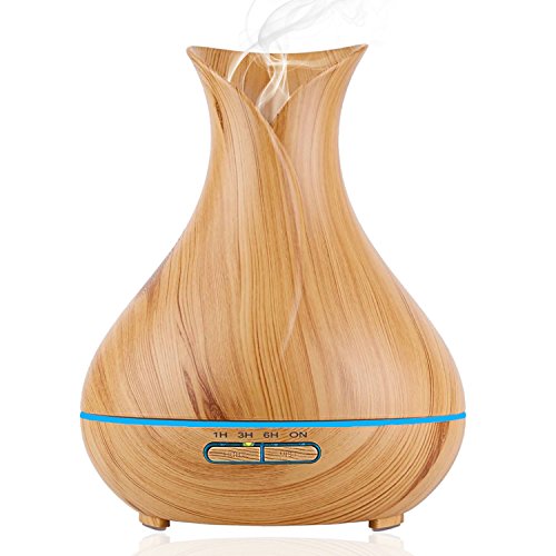 Aromatherapy Essential Oil Diffuser 400ml Wood Grain Ultrasonic Cool Mist Humidifier with Color Changing LED Lights and 4-timer setting for business Home Yoga Office Spa Bedroom Baby large Room Car