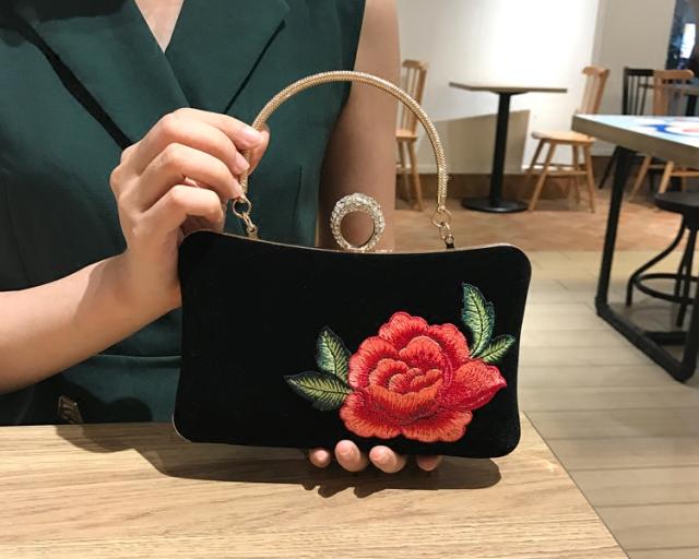 レディースファッション アパレル バッグ 刺繍 フラワー クラッチ ストラップ パーティー 結婚式 合金 バッグ エレガント