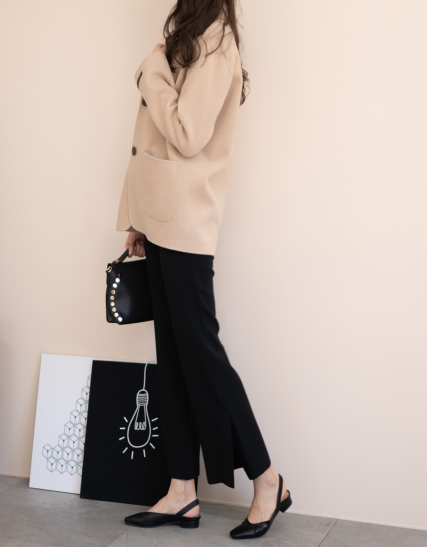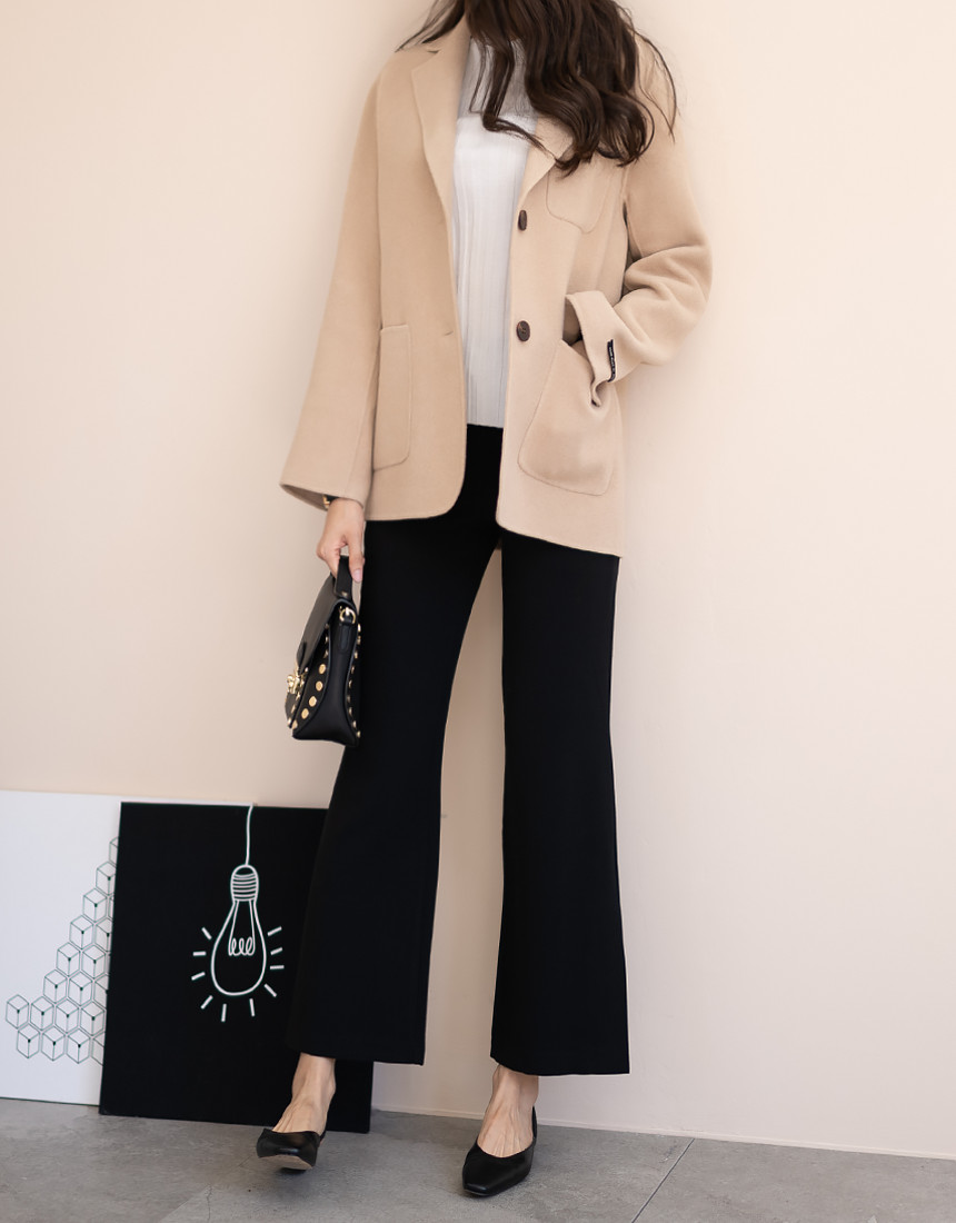 깔끔하면서 귀여운 무드의 울 해드메이드 반코트에요