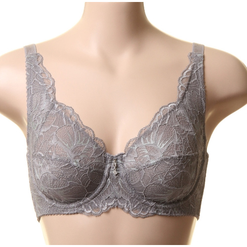 95사이즈까지의 다양한 사이즈 고객의 니즈를 반영한 투톤칼라의 그레이와 바이올렛의 자카드레이스 홑겹브래지어입니다.