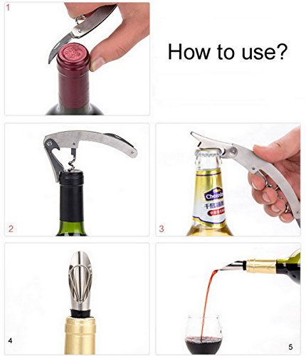 -. Title : Wine Tool Gift Set - Wine Bottle Corkscrew, Wine Bottle Opener, Stopper, Drip Ring, Foil Cutter and Pourer. 5-Pieces Accessory Tool by Vina