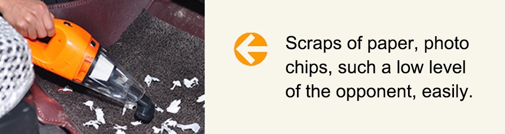- 120W / DC 12V strong suction, can suck cigarette ash, eraser crumbs, hair, wastepaper, or cookie crumbs, rice, etc.