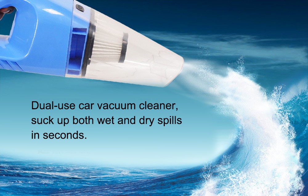 - Dual-use car vacuum cleaner, suck up both wet and dry spills in seconds.