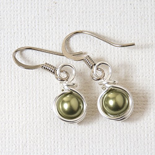 -. Title : Light Sage Green Swarovski Crystal Pearl Drop Earrings - Handmade Jewelry