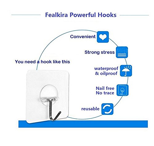 SUPER POWERFUL ON MARKET - Up to 11.00lb per hook on wall & ceiling, No nail needed.Size: 63mm(L) * 63mm(W).
