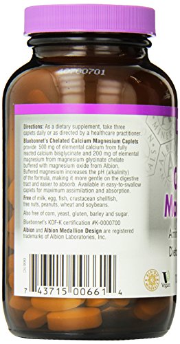 ReleaseDate : 2015-05-28 Studio : Blue Bonnet Publisher : Blue Bonnet Binding : Health and Beauty Product Description Bluebonnet's Albion Chelated Calcium Magnesium caplets provide a special blend of calcium and magnesium. Buffered magnesium increases the pH of the formula, making it more gentle on the digestive tract and easier to absorb. Available in easy-to-swallow caplets for maximum assimilation and absorption. 0