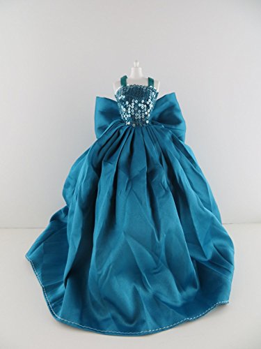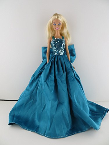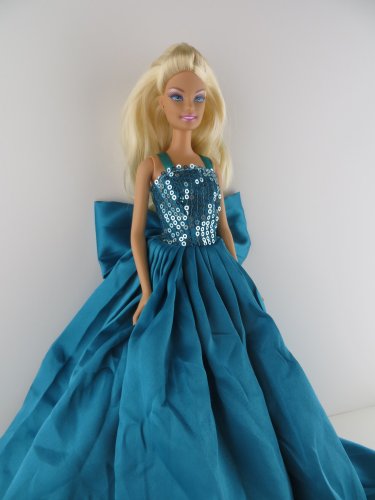 - A Teal Green Satin Gown with Sequined Top Made to Fit the Barbie Doll
