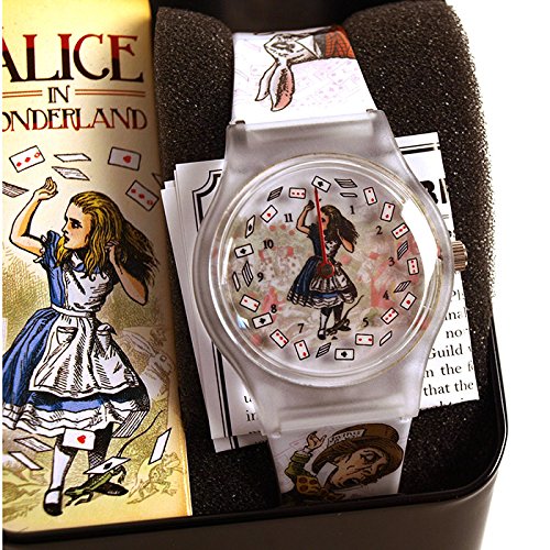 -. Feature : Vintage Style Alice in Wonderland Analogue Watch. Adjustable plastic watch strap and fittings / Decorative watch face with hour and minute hands. Watch face measures approx. 3.5cm diameter / Suitable for adults and teens. Comes with 1 Year Warranty / Beautifully presented in a printed metal gift tin / 100% officially licensed Alice in Wonderland merchandise