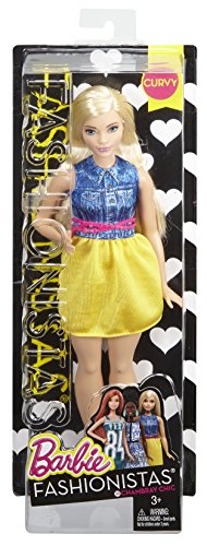 Barbie Fashionistas doll includes an adorable dress with yellow skirt and a chambray denim top with a collar and pocket detailing.