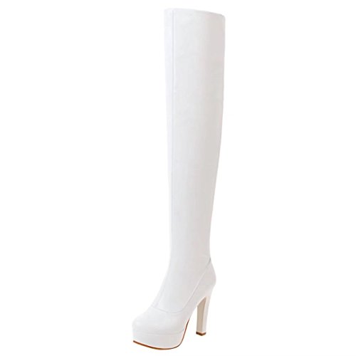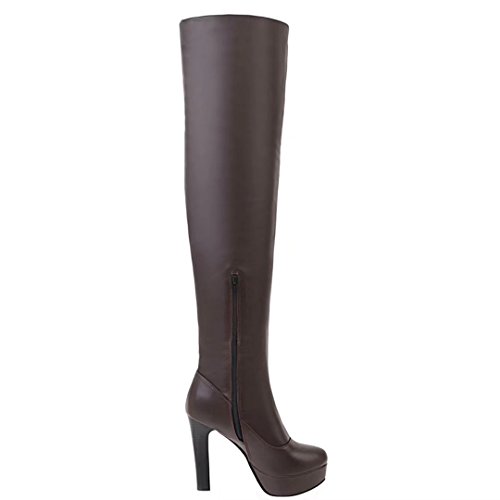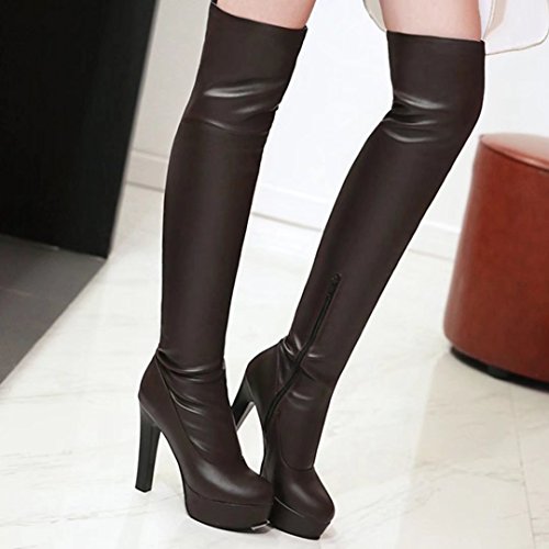 * Heel Height:11.5cm * Shaft: 57cm * Boots opening: 38cm * Platform Height: 3cm * Material: PU * Inner Material: Suede * Sole Material:Rubber * Color: Black, White, Brown * Toe Type: Round Toe * Closure Type: Zipper * Heel Type: Block Heel * The package will be delivered to you about 7-12 business days. * Please measure the sizes of your feet before you buy this item. If your foot is slightly wider or one of your toes is longer than usual, please choose the larger size. * Q1: What can I do if I have any problems? * A1: Please send email to tell us your problems first,we will reply you in 12 hours(except holiday) and try to find the best solutions,thanks for your trust! * Q2: What can I do if the products have problems? * A2: Please send us email with the problem products picture,which can help us to solve the problem in time! * AIYOUMEI commits to the shoes' design, craftsmanship have a unique study to the Excellent quality of products and timely courtesy of customer service experience, adhering to the customer is God's philosophy.Our product main conclud boots, military style, espadrilles, flat, lace-ups, loafers panties, High heels, plateau, casuals, dress shoes, oxfords and so on.If there are any problems, please feel free to contact us at any time, we are always here to help you. 0 |