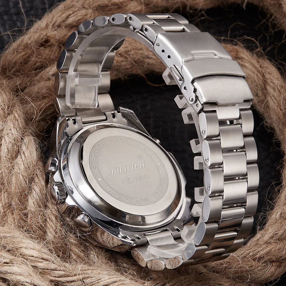 Feature:Alarm,Back Light,Water Resistant,Shock Resistant,Stop Watch,Complete Calendar,Chronograph,Luminous Hands,Auto Date