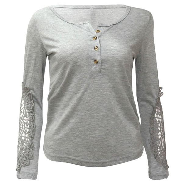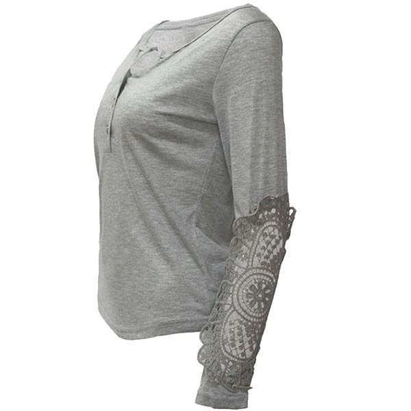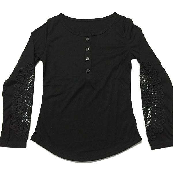 | 袖クロシェレース ヘンリーネック カットソー トップス 長袖 黒 ブラック グレー 無地 【ヘンリーネック カットソー トップス レディース 女性 ロンデルブラック レース lace ボタン カットソー トップス 秋 長そで】 | |